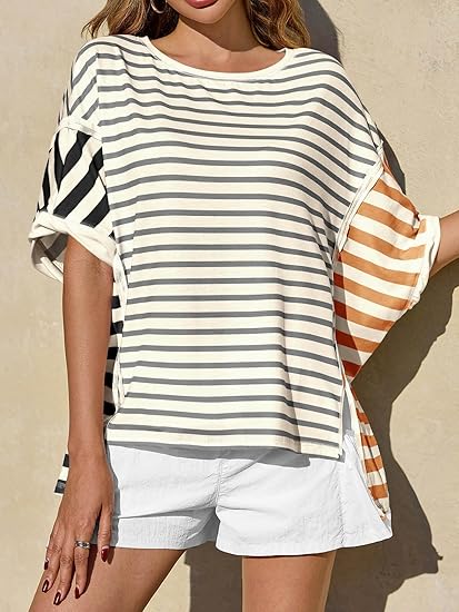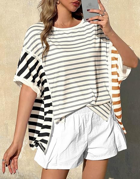 Perfect for casual street looks, weekend outings, or lounging in style. Pair it with white shorts for a fresh summer outfit, layer it over leggings for an effortless sporty vibe, or tuck it into denim for a bold yet comfortable ensemble. This striped oversized tee is a statement piece that balances comfort with modern edge.
