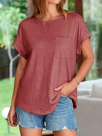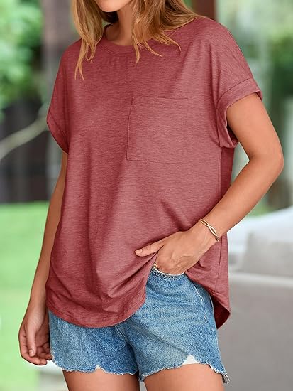 Perfect for daily wear, weekend outings, or travel. Pair it with denim shorts for a fresh summer look, tuck it into jeans for a laid-back street style, or wear it under a cardigan for a cozy layered outfit. This red brown pocket tee is an essential piece that combines practicality with effortless style.