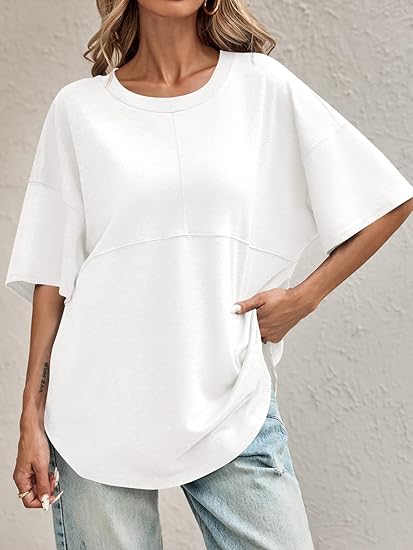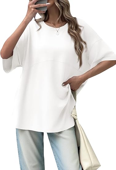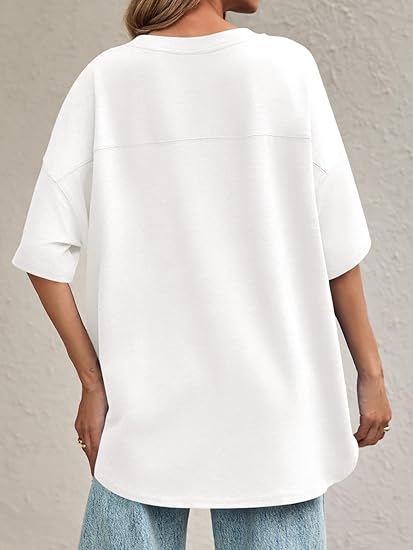 Perfect for casual streetwear, lounging, or layering. Pair it with biker shorts for an urban sporty vibe, tuck it into jeans for a chic minimal look, or wear it as a longline tee over leggings. This oversized white T-shirt is a wardrobe essential that blends comfort with timeless simplicity.
